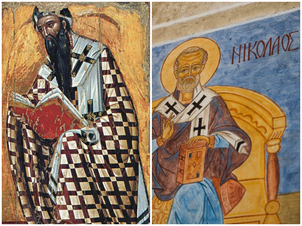 Ο Άγιος Νικόλας ταξιδεύει. Ο Santa Claus, πάλι, δεν είναι άλλος από τον «δικό» μας Άγιο Νικόλαο, αναμεμειγμένο με ήρωες, μύθους και θρύλους βορειοευρωπαϊκούς. Ο Άγιος Νικόλαος γεννήθηκε το 280 μ.Χ. στα Πάταρα της Λυκίας, από γονείς ευσεβείς και πλούσιους. Τους έχασε σε ηλικία δεκατριών ετών εξαιτίας ενός λοιμού και έγινε κληρονόμος μιας μεγάλης περιουσίας που διέθετε για να ανακουφίζει τους φτωχούς, τις χήρες και τα ορφανά. Νεότατος έγινε επίσκοπος στη Μύρα, όπου απέκτησε ιδιαίτερη φήμη. Πέθανε το 330 ή 333 μ.Χ. (το 342 μ.Χ. σύμφωνα με την Καθολική Εκκλησία) όμως η φήμη του «θαυματουργού» αγίου εξαπλώθηκε στη δύση, ιδιαίτερα μεταξύ των ναυτικών. Το 1087 Ιταλοί ναυτικοί έκλεψαν το λείψανο του Νικολάου από τον τάφο του στη Μύρα, για να το προστατέψουν από τους πειρατές και το μετέφεραν στο Μπάρι με μεγάλες τιμές – αργότερα, γράφτηκε πως εκείνη την ημέρα θεραπεύτηκαν σαράντα επτά άνθρωποι. Μαζί με τα λείψανα του Αγίου «ταξίδεψαν» στη Δύση και οι θρύλοι που τον συνόδευαν. Σύμφωνα με έναν απ’ αυτούς, κάποιος έμπορος απ’ τα Πάταρα είχε χάσει την περιουσία του και δεν μπορούσε να θρέψει την οικογένειά του. Οι τρεις κόρες του, για να βγάλουν την οικογένεια από τη δύσκολη θέση, αποφάσισαν να ρίξουν κλήρο – όποια κληρωνόταν θα γινόταν πόρνη για να μαζέψει χρήματα για την προίκα των άλλων. Ο κλήρος έπεσε στη μεγαλύτερη. Ο Νικόλαος, μαθαίνοντας την τραγική αυτή ιστορία θέλησε να βοηθήσει την οικογένεια. Έτσι, μια νύχτα που όλοι κοιμούνταν, σκαρφάλωσε στη στέγη και έριξε μικρά πουγκιά με χρυσό από την καμινάδα, τα οποία «προσγειώθηκαν» μέσα στις βρεγμένες κάλτσες των κοριτσιών που ήταν κρεμασμένες στο τζάκι για να στεγνώσουν. Έτσι προέκυψε το έθιμο να μπαίνουν τα δώρα των Χριστουγέννων σε κάλτσες κρεμασμένες στο τζάκι, το οποίο σήμερα προστέθηκε στο μύθο του Αι Βασίλη. Ο θρύλος του προστάτη των ναυτικών και των παιδιών, συνδέθηκε παράλληλα με το γενικότερο έθιμο της προσφοράς δώρων (που ήταν περισσότερο κεράσματα, χριστουγεννιάτικα φρούτα, μήλα, πορτοκάλια, καρύδια και γλυκά) στα παιδιά την ημέρα της μνήμης του, στις 6 Δεκεμβρίου, όμως ο Άγιος ακόμη απεικονιζόταν με γκρίζα ή μαυριδερή γενειάδα, να πετάει στον ουρανό πάνω σε ένα λευκό άλογο. Τα χρόνια της Μεταρρύθμισης και του προτεσταντισμού, η λατρεία των Καθολικών αγίων περιορίστηκε και χλευάστηκε. Στις Kάτω Xώρες όμως και ιδίως στην Ολλανδία, ο Sinter Klaas (Saint Nicholas), εξακολουθούσε να λατρεύεται από τους προτεστάντες ως ο προστάτης των ναυτικών, των εμπόρων και των παιδιών. Οι Ολλανδοί μετέφεραν τη φήμη του Αγίου στο Άμστερνταμ, όπου τον «συγχώνευσαν» με ένα δικό τους παγανιστικό, τοπικό ήρωα του χειμώνα τον Wooden, γερμανικής προέλευσης. Σ’ αυτή την εκδοχή του ο Αϊ Νικόλας έχει λευκή γενειάδα, φτάνει με πλοίο από την Ισπανία και έχει μαζί του έναν Μαυριτανό βοηθό, τον Zwart Piet (Μαύρο Πητ), που βάζει στον σάκο του τα κακά παιδιά και γυρίζει τη χώρα, καβάλα στο άσπρο άλογό του.