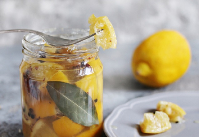 Λεμόνια στην άρμη. Τα λεμόνια στην άρμη ψιλοκομμέννα γαρνίρουν εξαιρετικά ψητά λαχανικά και πατάτες. Διατηρούνται σε αποστειρωμένα βάζα ερμητικά κλεισμένα 3-4 μήνες.