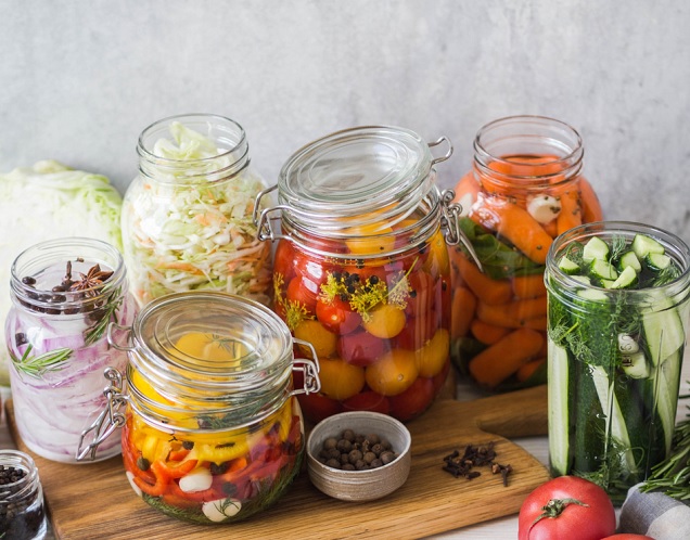 - Ξίδι, αλάτι και ζάχαρη εμποδίζουν την ανάπτυξη των βλαβερών μικροργανισμών. Γι’ αυτό επιλέγουμε τη χρήση του ξιδιού (συχνά σε μείγμα με ζάχαρη) ή της άλμης για τα λαχανικά και της ζάχαρης συνήθως για τα φρούτα.