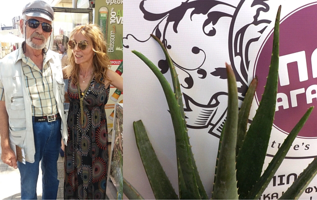 O κ. Χρονάκης, καλλιεργητής βιολογικής αλόης, και η κ. Μποκόρου, ιδιοκτήτρια του Παν Αγαθόν στο Χαλάνδρι, όπου μπορεί να βρει κανείς φρέσκα φύλλα βιολογικής αλόης για εξαγωγή του θεραπευτικού της ζελέ στο σπίτι