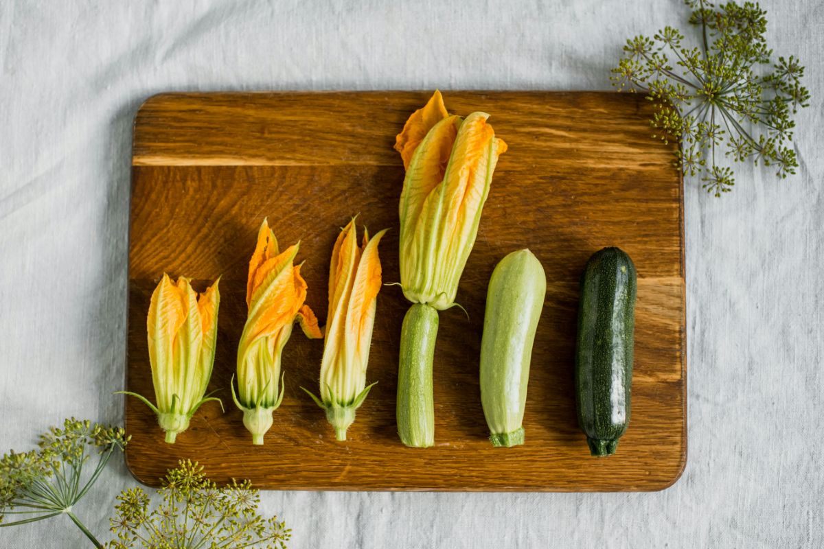 Κολοκυθοανθοί (κολοκυθολούλουδα) ψητοί, γεμιστοί με ανθότυρο ή ρικότα