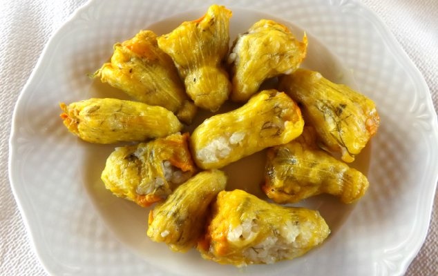 Κολοκυθοανθοί γεμιστοί με ρύζι και μυρωδικά