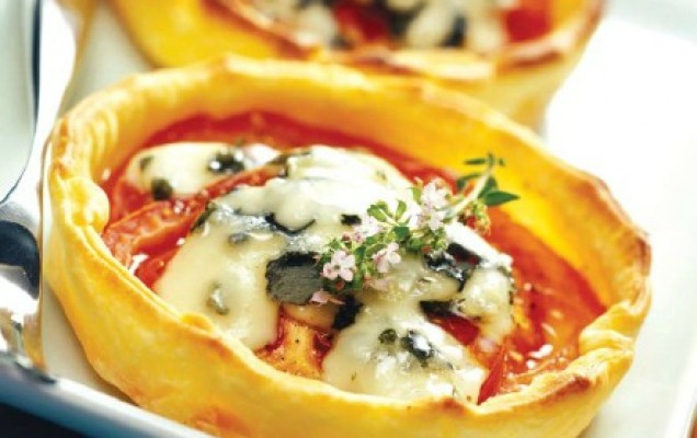 Τάρτες με ντομάτα, κασέρι και βασιλικό