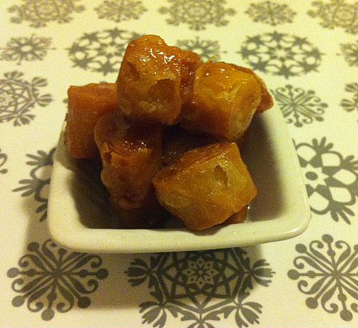 450 γρ. περίπου φύλλο κρούστας (12-14 φύλλα) • μισό φλιτζάνι βούτυρο • λάδι για το τηγάνισμα Για το σιρόπι 2 1/2 φλιτζάνια ζάχαρη • 1 1/2 φλιτζάνι νερό • 1 βανίλια σε σκόνη • 1 κουταλιά της σούπας χυμό πορτοκαλιού ή λεμονιού (προαιρετικά)