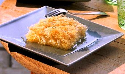 Σιροπιαστό γλυκό με κανταΐφι και ανθότυρο