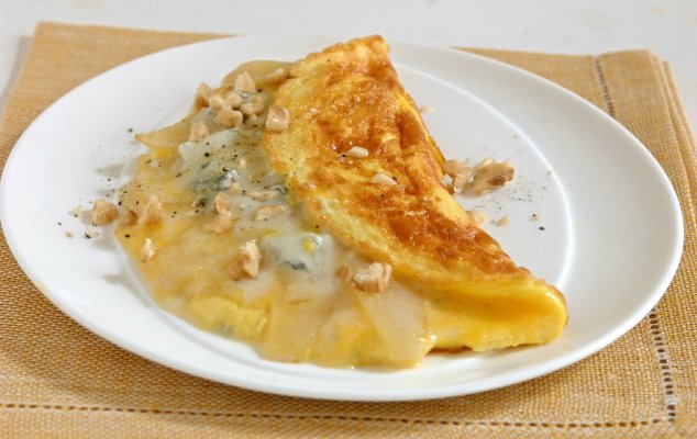 Συνταγή για αφράτη ομελέτα με γραβιέρα, μπλε τυρί και καρύδια