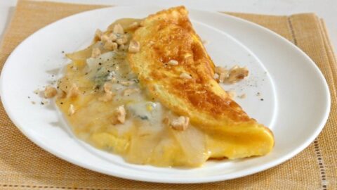 Συνταγή για αφράτη ομελέτα με γραβιέρα, μπλε τυρί και καρύδια