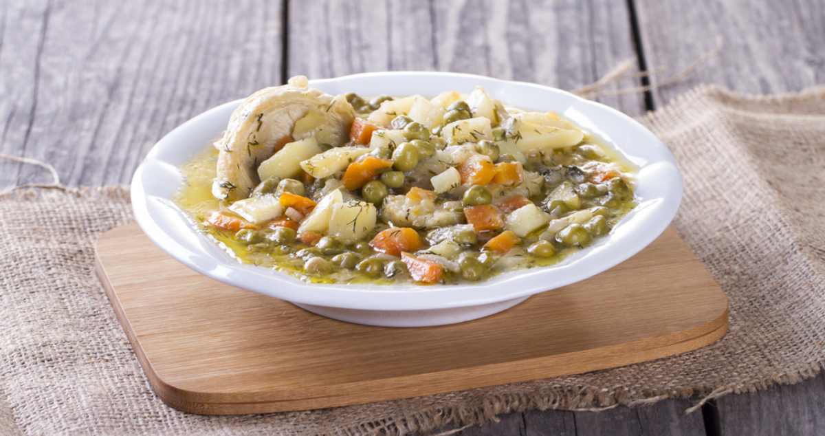 Συνταγή για αγκινάρες λεμονάτες με πατάτες και αρακά