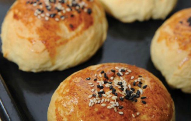 - Λιώνετε τη γέµιση στο blender και τη µοιράζετε στα πιτάκια. Τα κλείνετε, φτιάχνοντας µπαλάκια. Τα τοποθετείτε σε βουτυρωµένο ταψί, τα αλείφετε µε βούτυρο και τα πασπαλίζετε µε ζάχαρη, κανέλα και σουσάµι.