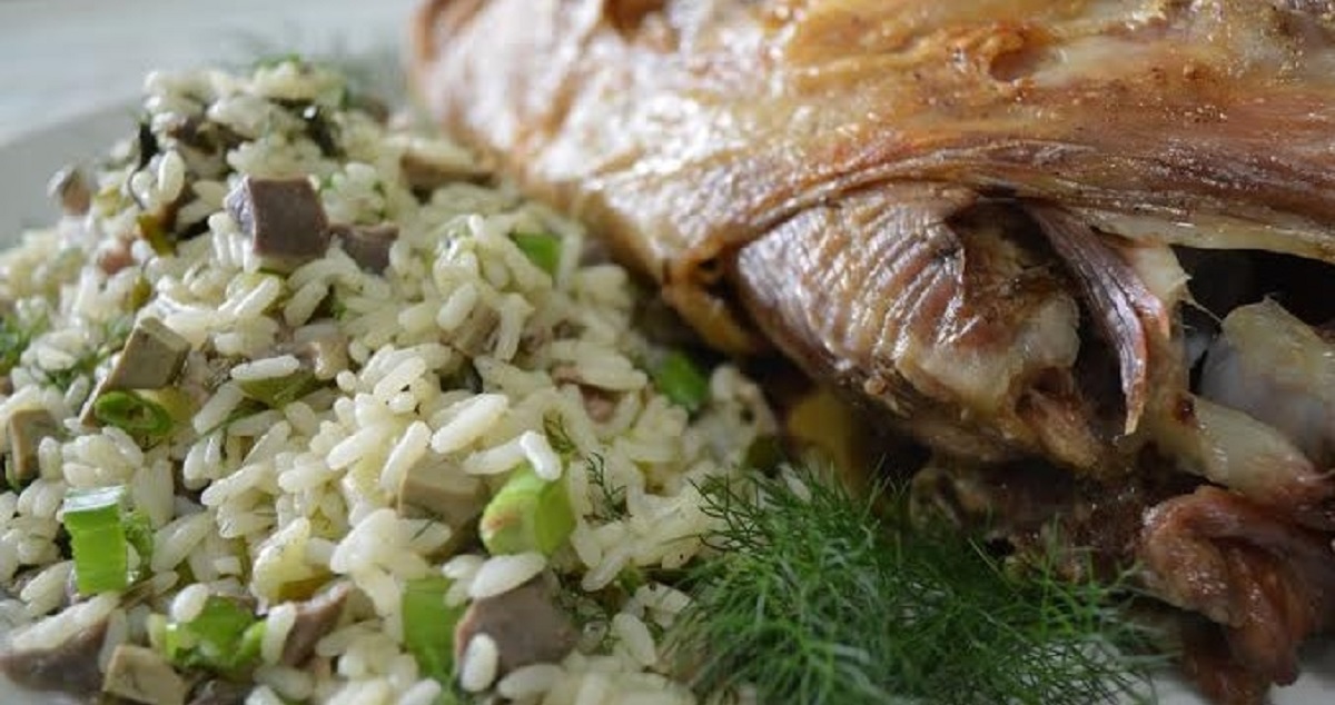 Συνταγή για αρνάκι φούρνου γεμιστό με ρύζι, συκωτάκια, φρέσκα κρεμμυδάκια και μπόλικο άνηθο