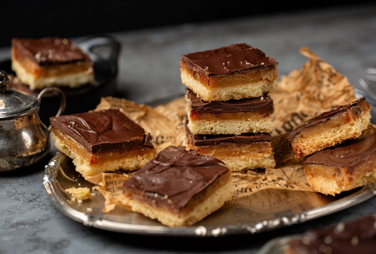 Συνταγή για γλυκό ταψιού με βάση μπισκότου και στρώσεις καραμέλας και σοκολατένιου γλάσου. Το μπισκοτογλυκό αυτό έχει σκοτσέζικη καταγωγή και θα το βρείτε στη διεθνή συνταγογραφία ως shortbread καλαμέλας ή shortbread του εκατομμυριούχου (millionaire’s shortbread). Είναι αγαπητό κέρασμα και αρέσει πολύ και στα παιδιά