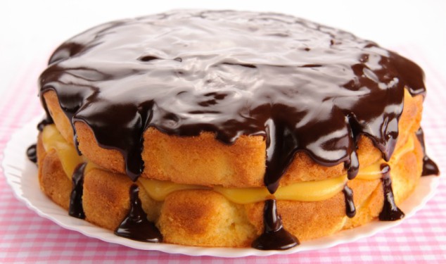 - Σε μία κατσαρόλα βάζετε όλα τα υλικά για την κρέμα εκτός από το βούτυρο και ανακατεύετε το μίγμα μέχρι να γίνει λείο. Αφήνετε την κρέμα να πάρει μία βράση σε μέτρια φωτιά, ανακατεύοντας συνεχώς για 2 λεπτά. Κατεβάζετε από τη φωτιά και προσθέτετε στο βούτυρο. Αφήνετε την κρέμα να κρυώσει εντελώς, ανακατεύοντας περιστασιακά.