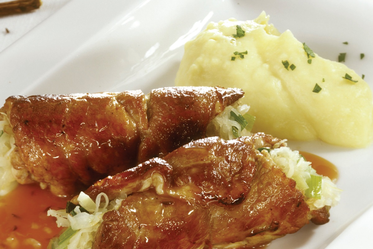 Ένα νόστιμο πιάτο, με τους πρωταγωνιστές του χειμώνα -χοιρινό, λάχανο και σελινόριζα- σε …απαρτία. Με την κόκκινη σαλτσούλα του μας κατευθύνει σχεδόν από μόνο του σε μια ερυθρή επιλογή, που μάλλον θα πρέπει να είναι κάποιο κρασί με όγκο και ωριμότητα, μαλακές ταννίνες και ζεστά, πικάντικα αρώματα. Επιλέξτε ένα Merlot 5ετίας.