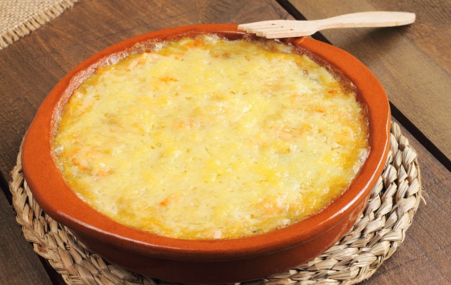 - Ρίχνετε την τηγανιά σε ταψάκι και από πάνω ρίχνετε τον πουρέ. Πασπαλίζετε με το υπόλοιπο τυρί και ψήνετε σε δυνατό φούρνο για 15’ μέχρι να ροδίσει ελαφρά ή επιφάνεια του φαγητού. Σερβίρετε αμέσως.