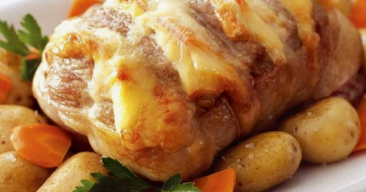 Συνταγή για ροδοψημένο χοιρινό στο φούρνο με χαλούμι και μπέικον. Ο συνδυασμός αυτού του πιάτου με ένα παλαιωμένο Chardonnay είναι μαγεία.