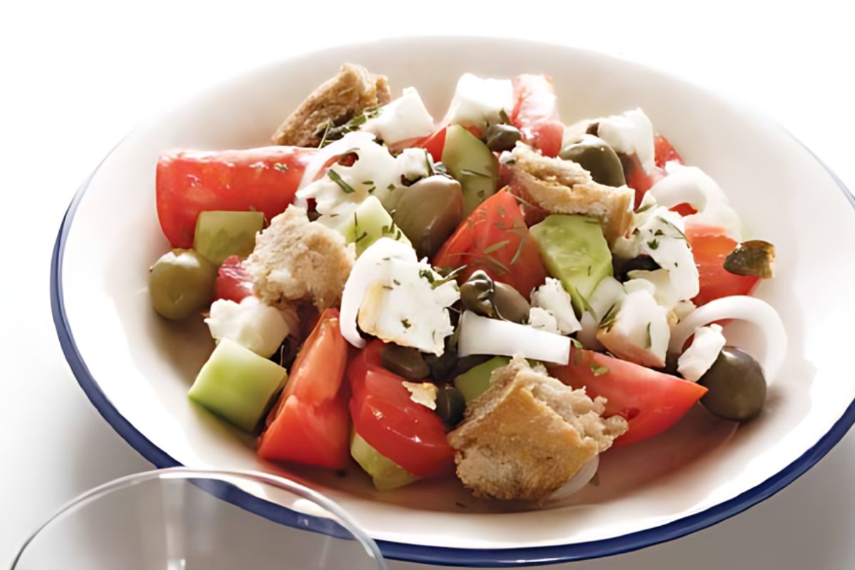 Η νούμερο ένα σαλάτα του θέρους, γίνεται πιο ανάλαφρη και δίνει πιο ήπια αίσθηση αν αντικαταστήσετε τη φέτα με ανθότυρο. Μπορούμε να τη συνοδεύσουμε με ένα ροζέ κρασί από Μοσχοφίλερο, αλλά και να την ταιριάξουμε με μια αρωματική Μαλαγουζιά.