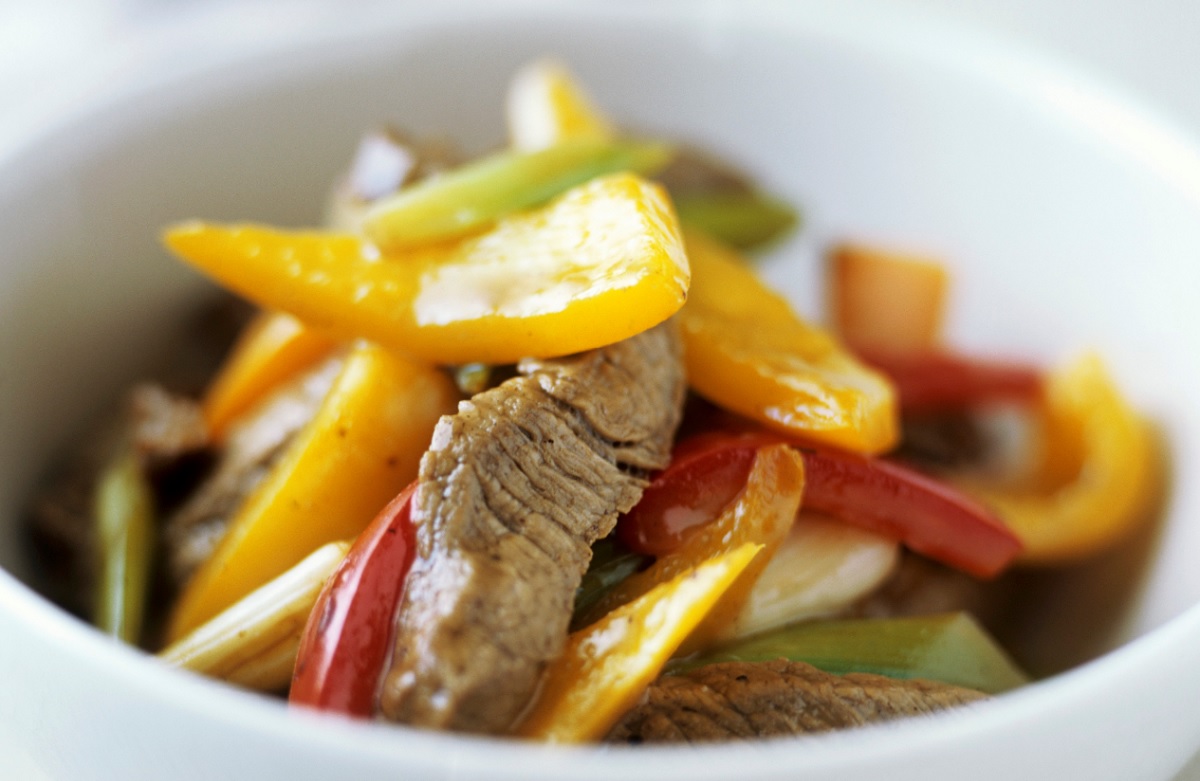 Το μοσχαράκι αλλιώς, με πιπεριές και τζίντζερ. Συνταγή με επιρροές από την ασιατική κουζίνα. Απολαύστε με ρύζι ατμού ή πιλάφι.