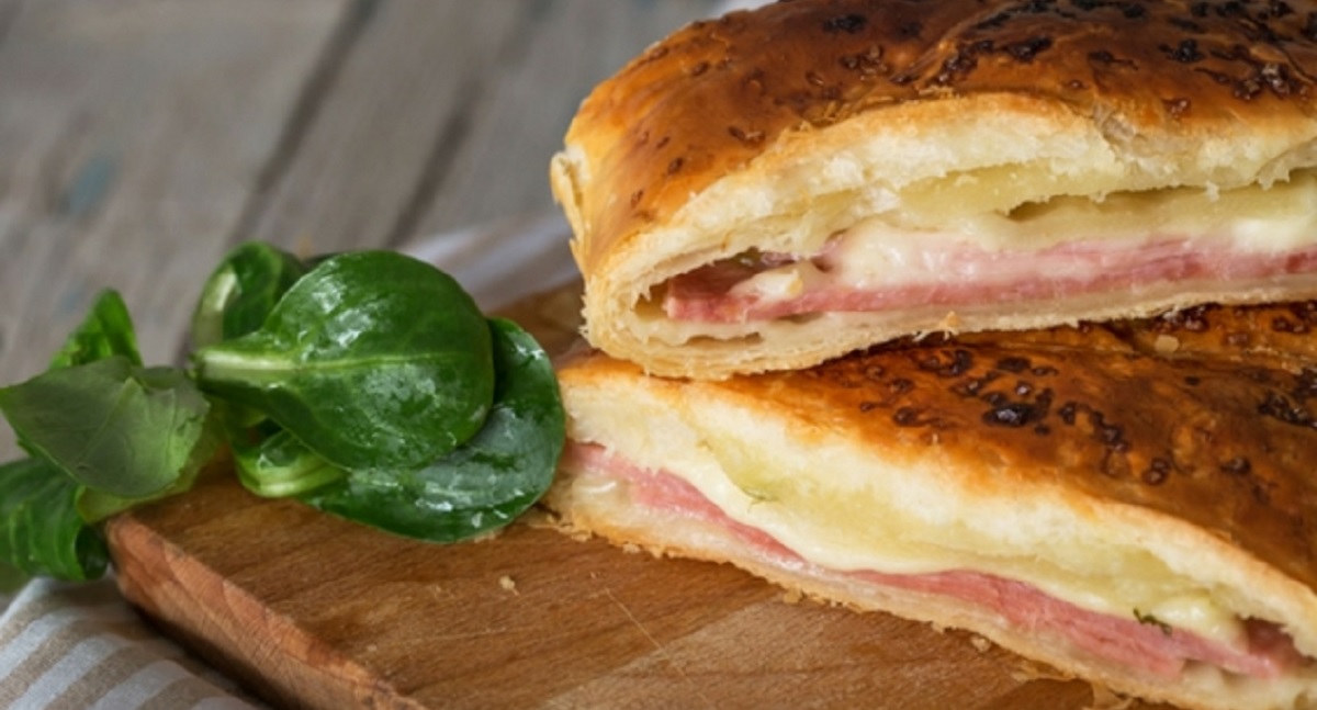 - Χαράζετε την πίτα σε κομμάτια με σχήμα τετραγώνου, χτυπάτε τα αυγά με το γάλα, λίγο αλάτι και το υπόλοιπο λάδι, τα ρίχνετε στην πίτα και τη βάζετε αμέσως στο φούρνο να ψηθεί για 50’ - 55’ στους 200 °C, μέχρι να φουσκώσει και να ροδίσει.