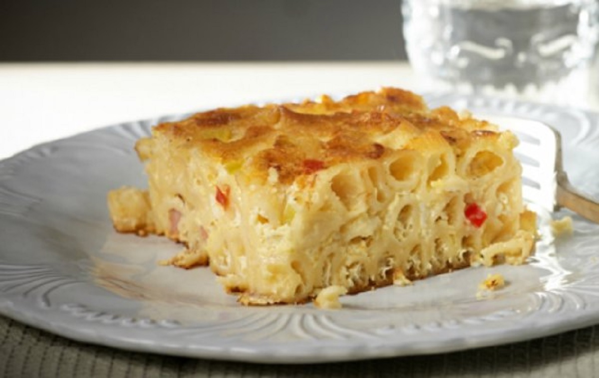 - Βάζουμε το ταψί σε προθερμασμένο φούρνο και ψήνουμε το φαγητό στους 200 °C για 50 λεπτά περίπου, μέχρι να μαλακώσει και να ροδίσει η επιφάνειά των ζυμαρικών. Σερβίρουμε το φαγητό ζεστό, κομμένο σε μερίδες.