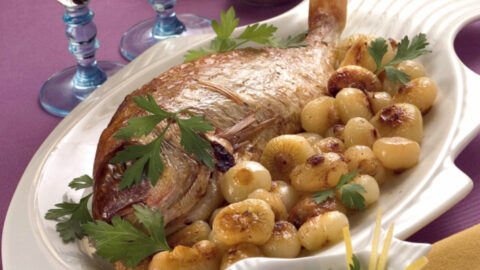Συνταγή για φαγκρί στο φούρνο με κρεμμύδια και ούζο