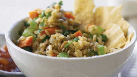 Συνταγή για ρύζι με φακές, νηστίσιμο πιάτο που λειτουργεί ως κυρίως και βέβαια ως θρεπτική σαλάτα οσπρίων.