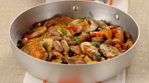 «Τηγανιά» με φασόλια, μανιτάρια και ντομάτα