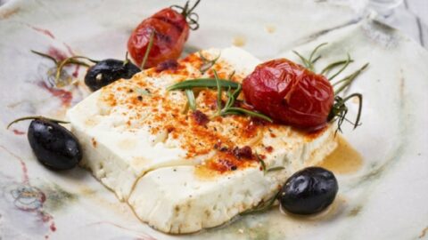 Φέτα ψητή με ντοματίνια και μπούκοβο