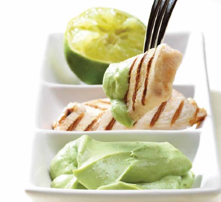 - Σερβίρετε τα φιλέτα κοτόπουλου γαρνίροντας με τον πουρέ αβοκάντο.