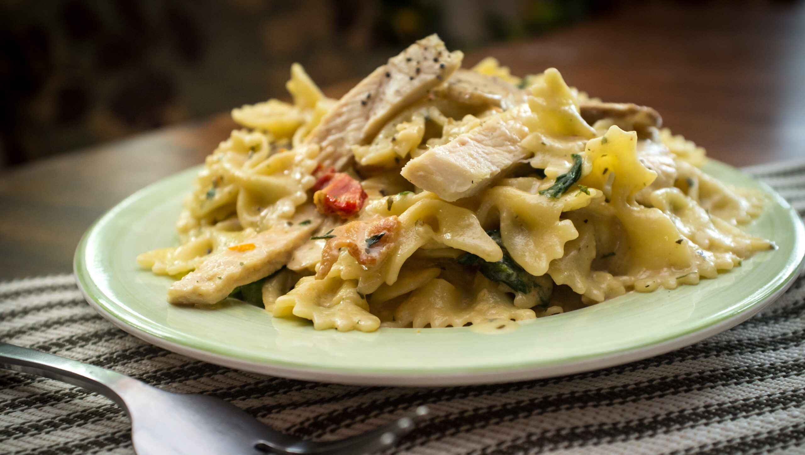 - Στο μεταξύ βράζετε τα φιογκάκια σύμφωνα με τις οδηγίες της συσκευασίας τους και τα στραγγίζετε. Σερβίρετε τα ζυμαρικά με τη σάλτσα τους πασπαλισμένα με τριμμένο τυρί και φρεσκοτριμμένο πιπέρι.