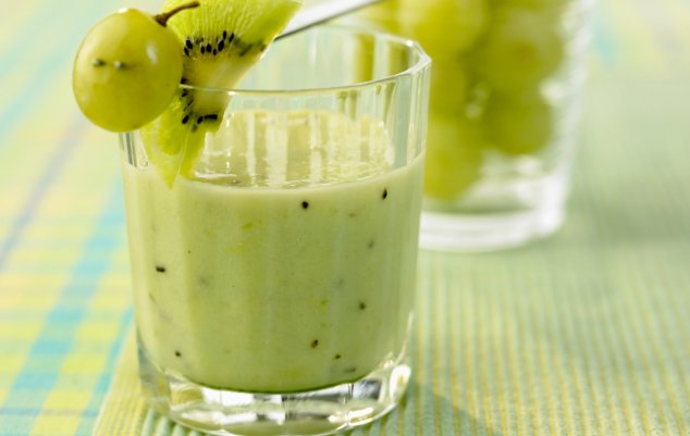 - Ρίχνετε στο μπλέντερ τις ρώγες σταφυλιού, το ακτινίδιο καθαρισμένο και κομμένο σε ροδέλες και προσθέτετε τη ζάχαρη. Κατόπιν ρίχνετε το γάλα, το παγωτό και το χυμό σταφυλιού και λειτουργείτε τη συσκευή μέχρι τα υλικά να ομογενοποιηθούν. Σερβίρετε αμέσως σε ποτήρια.