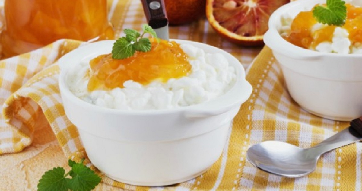 - Ανακατεύετε τις ροδέλες και τα κομμάτια φρούτων μεταξύ τους και τα μοιράζετε σε 2 μπολ. Χωρίζετε την ποσότητα τυριού στα δύο και καλύπτετε τα φρούτα. Γαρνίρετε με όση μαρμελάδα πορτοκάλι θέλετε.