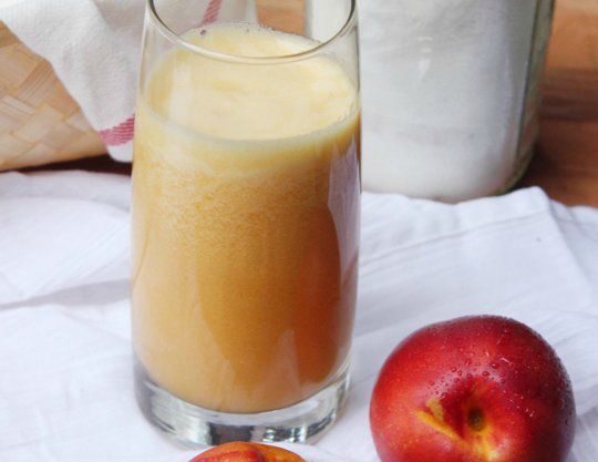 - Ανακατεύετε καλά στο μπλέντερ τα νεκταρίνια με το 1 φλιτζάνι νερό. Σουρώνετε το μείγμα και το ξαναρίχνετε στο μπλέντερ όπου προσθέτετε τα υπόλοιπα υλικά και ανακατεύετε ξανά. Βάζετε το χυμό στο ψυγείο να παγώσει διαφορετικά τον σερβίρετε αμέσως με παγάκια. Πηγή αγγλικού πρωτοτύπου: http://www.yummly.com/