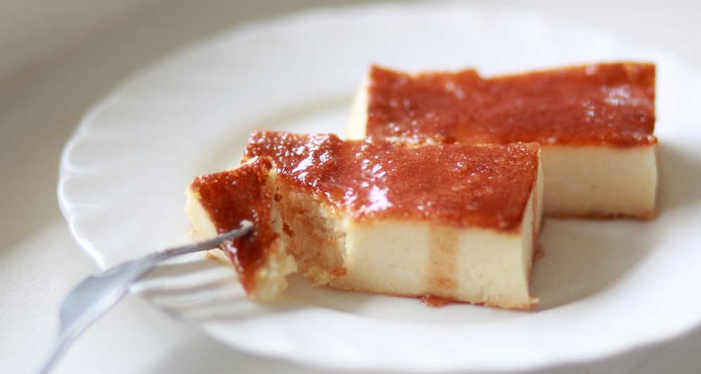 - Μεταφέρετε την κρέμα σε βουτυρωμένο ταψί και ψήνετε για 1 ώρα σε προθερμασμένο φούρνο στις αντιστάσεις στους 180°C.