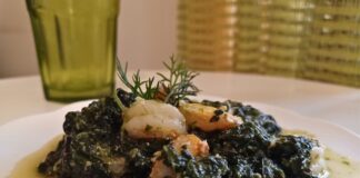 Γαρίδες με σπανάκι, ούζο και ταραμολέμονο