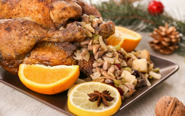 Συνταγή για γαλοπούλα γεμιστή, τη μεγάλη πρωταγωνίστρια του γιορτινού τραπεζιού. Δίπλα στη φουρνιστή γαλοπούλα ταιριάζει ένα καλό γιορτινό κρασί, στις αποχρώσεις του κόκκινου. Αν επιμένετε ελληνικά, και καλά πράττετε, προτιμήστε ένα ροζέ πικάντικο κρασί από Ξινόμαυρο.