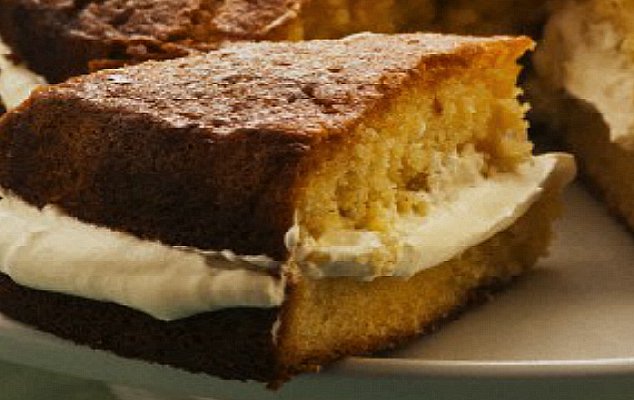 - Κόβετε το κέικ οριζόντια στη μέση. Με μία σπάτουλα απλώνετε τη γέμιση στο ένα κομμένο και καλύπτετε με το δεύτερο κομμάτι κομμάτι ξαναδίνοντας στο κέικ του το αρχικό του σχήμα. Αν περισσέψει γέμιση, μπορείτε να καλύψετε και την επιφάνεια.