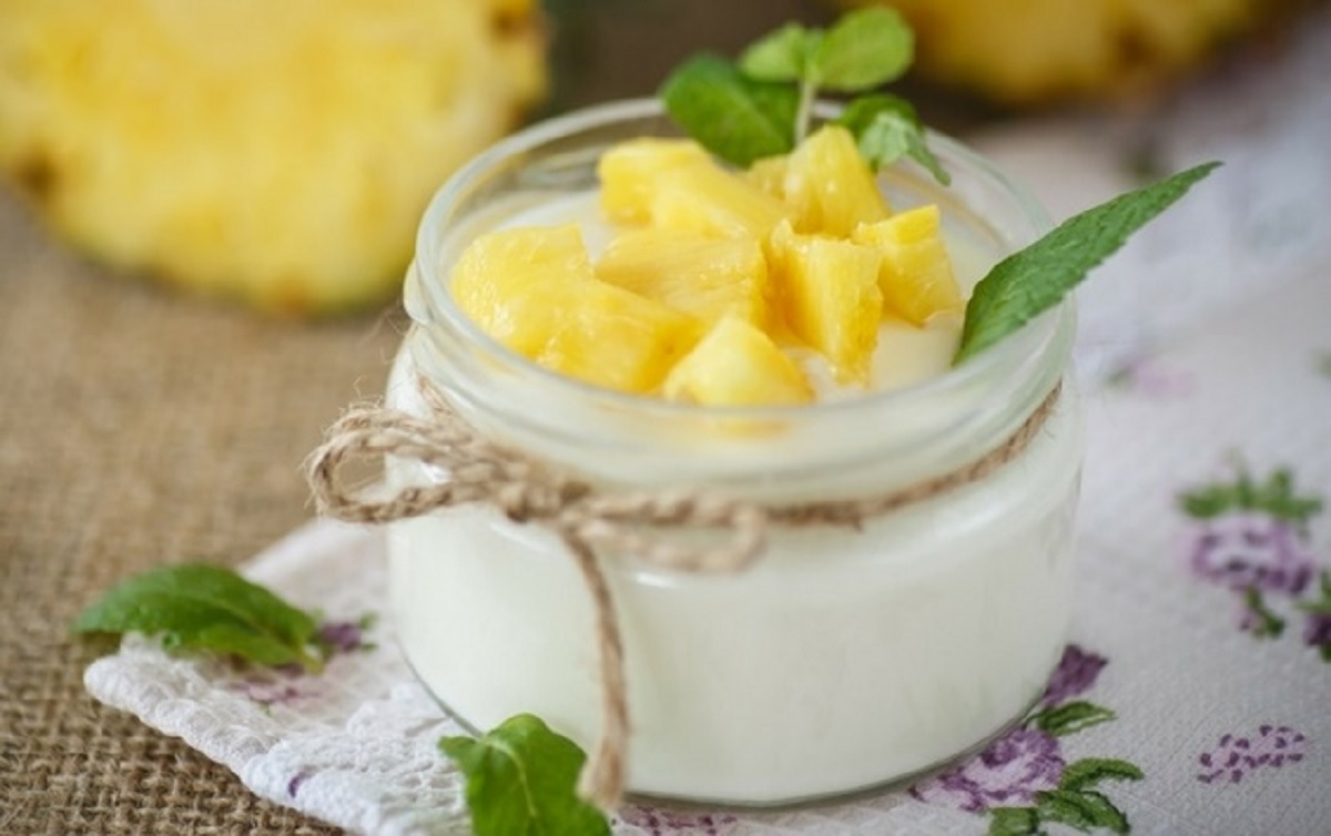 Συνταγή για γιαούρτι με ανανά μαριναρισμένο σε καστανή ζάχαρη και δυόσμο