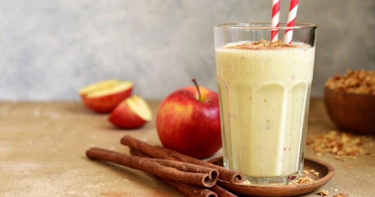 - Κόβετε τα μήλα σε κυβάκια και τα ρίχνετε στο μπλέντερ μαζί με το χυμό του λεμονιού και το μέλι. Προσθέτετε το γιαούρτι, το χυμό του μήλου και την κανέλα και λειτουργείτε τη συσκευή μέχρι τα υλικά να ομογενοποιηθούν. Σερβίρετε αμέσως σε ποτήρια.