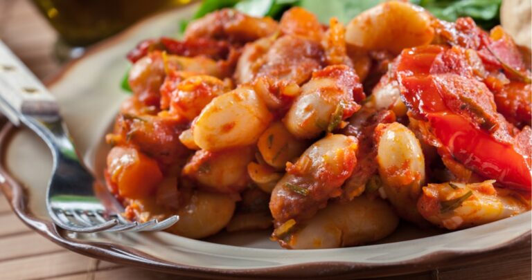 Συνταγή για γίγαντες Πρεσπών στο φούρνο με κόκκινες πιπεριές Φλωρίνης