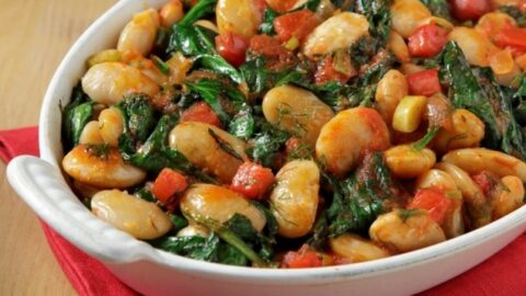 Συνταγή για φασόλια γίγαντες με σπανάκι και ντομάτα