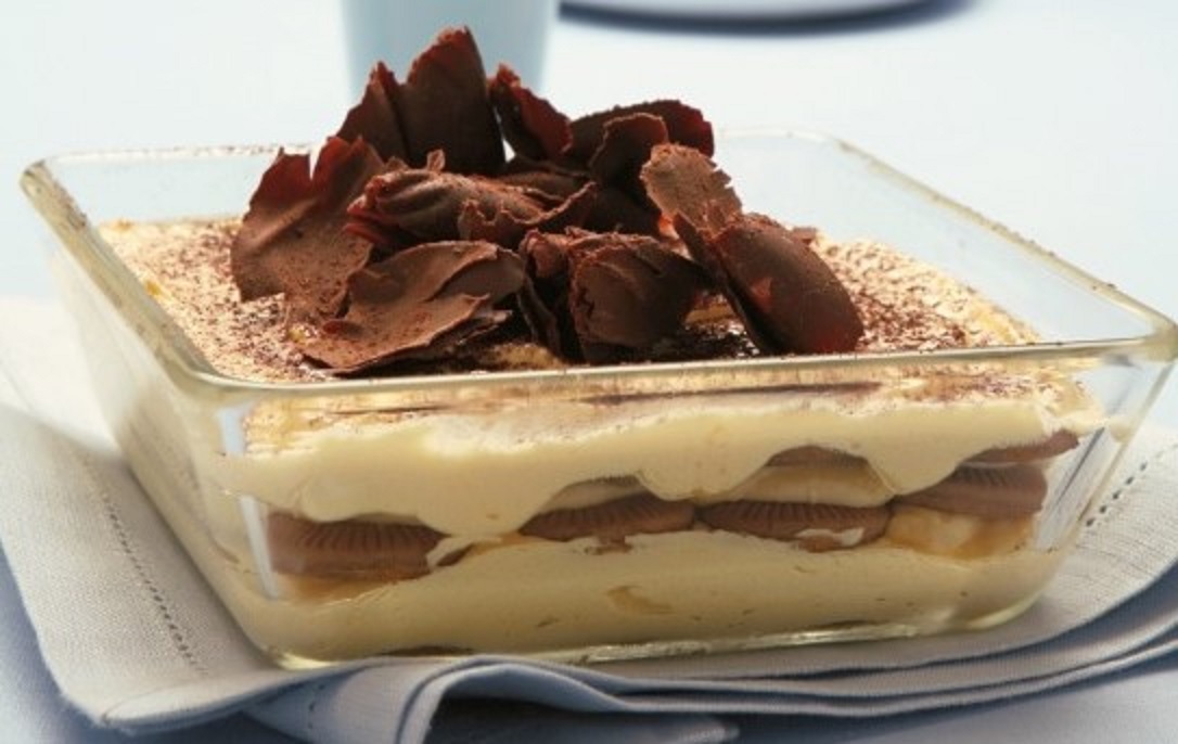 - Βάζετε τα μισά σαβαγιάρ σε ορθογώνια φόρμα και τα ραντίζετε με το μισό σιρόπι. Κατόπιν αν θέλετε, τα πασπαλίζετε με λίγο κακάο. Αδειάζετε τη μισή κρέμα στη φόρμα, ξαναβάζετε μια στρώση σαβαγιάρ, πάλι σιρόπι και την υπόλοιπη κρέμα. Γαρνίρετε το γλυκό με σοκολατένιες φλούδες και κακάο, όπως βλέπετε στη φωτογραφία και σερβίρετε.