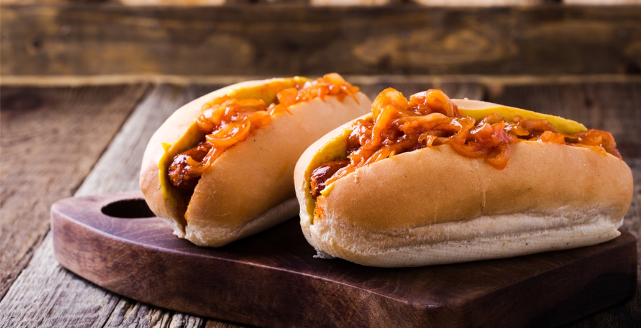 - Βράζετε τα λουκάνικα, τα στραγγίζετε και κατόπιν τα τοποθετείτε μέσα στα ψωμάκια μαζί με τα κρεμμύδια. Ανεβάστε στα ύψη τη γευστική ένταση, συνοδεύοντας με μουστάρδα.