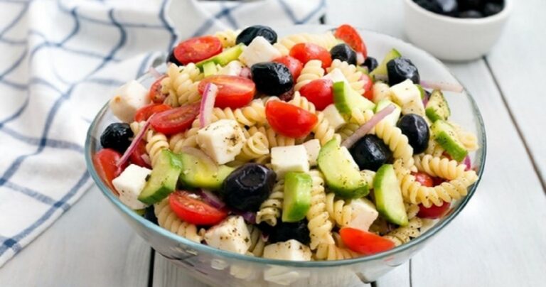 - Βράζετε τα ζυμαρικά σύμφωνα με τις οδηγίες της συσκευασίας, τα σουρώνετε, τα περνάτε από κρύο νερό και τα σερβίρετε σε μεγάλο μπολ.