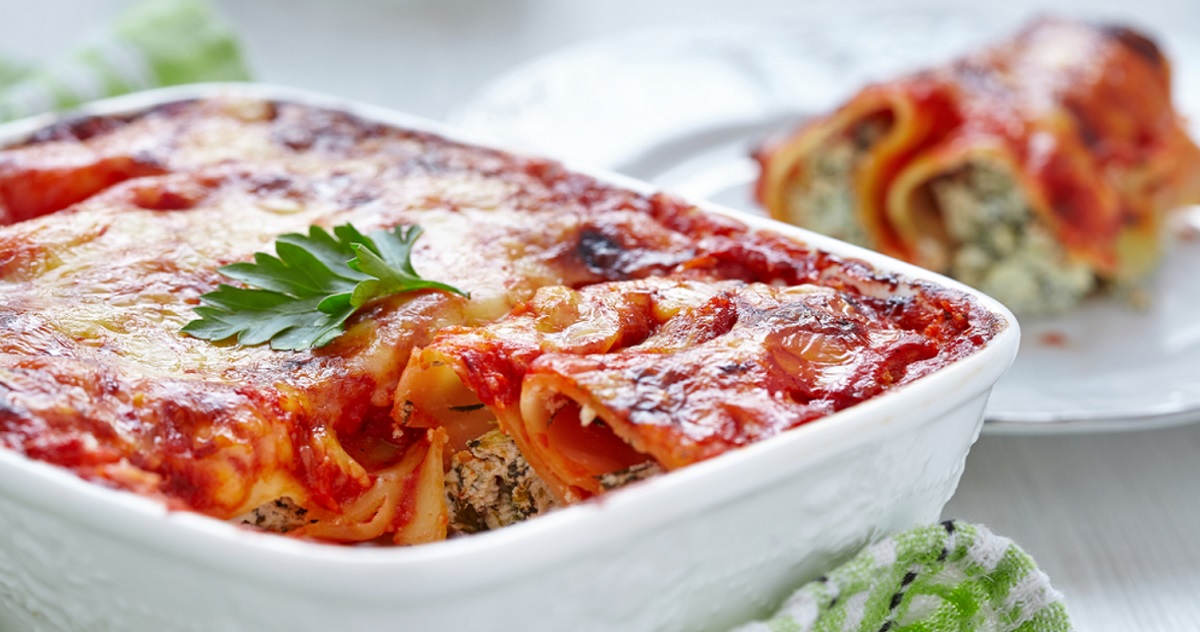 - Γεμίζετε τα κανελόνια με το μείγμα από σπανάκι. Σε πυρίμαχο σκεύος απλώνετε με ένα κουτάλι λίγη από την υπόλοιπη σάλτσα μπεσαμέλ. Βάζετε σε μία στρώση τα γεμιστά κανελόνια και τα περιχύνετε με την υπόλοιπη μπεσαμέλ και τη σάλτσα ντομάτας, ανακατεμένη με το υπόλοιπο τριμμένο τυρί. Ψήνετε το φαγητό 40΄-45΄, μέχρι να ροδίσει στην επιφάνεια.