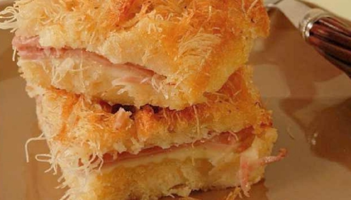 Πίτα – «μούρλια» με πέντε είδη τυριών μεταξύ των οποίων και το καπνιστό μετσοβόνε, ζαμπόν και βουτυράτο κανταΐφι.