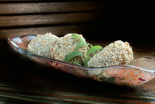 - Αφήνετε το μίγμα για 20’ στο ψυγείο να σφίξει και στη συνέχεια το πλάθετε σε κεφτέδες. Το περνάτε πρώτα από το αλεύρι, μετά από τα υπόλοιπα αυγά χτυπημένα και τέλος από το σουσάμι. Ζεσταίνετε αρκετό ελαιόλαδο σε ένα τηγάνι και τηγανίζετε τους κεφτέδες σε χαμηλή φωτιά, μέχρι να πάρουν χρυσοκίτρινο χρώμα. Τους στραγγίζετε σε απορροφητικό χαρτί και τους κρατάτε ζεστούς.
