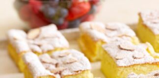 Κέικ με μαρμελάδα λεμονιού, άχνη και αμύγδαλα