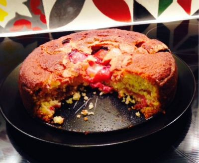 - Πλένετε, καθαρίζετε τις φράουλες και τις κόβετε σε φέτες. Βουτυρώνετε ελαφρά μια φόρμα για κέικ. Αδείζετε το μείγμα και στη συνέχεια απλώνετε από πάνω τις φράουλες. Πασπαλίζετε με τη ζάχαρη.