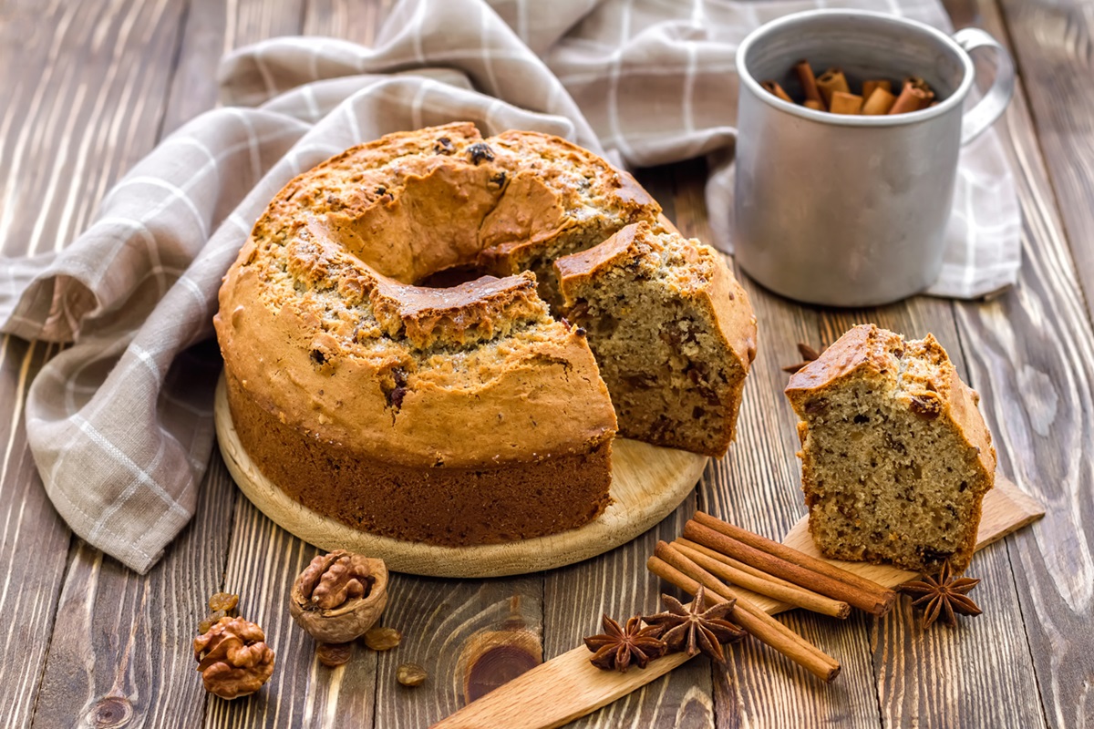 Συνταγή για κέικ κανέλας με μέλι, καρύδια και σταφίδες
