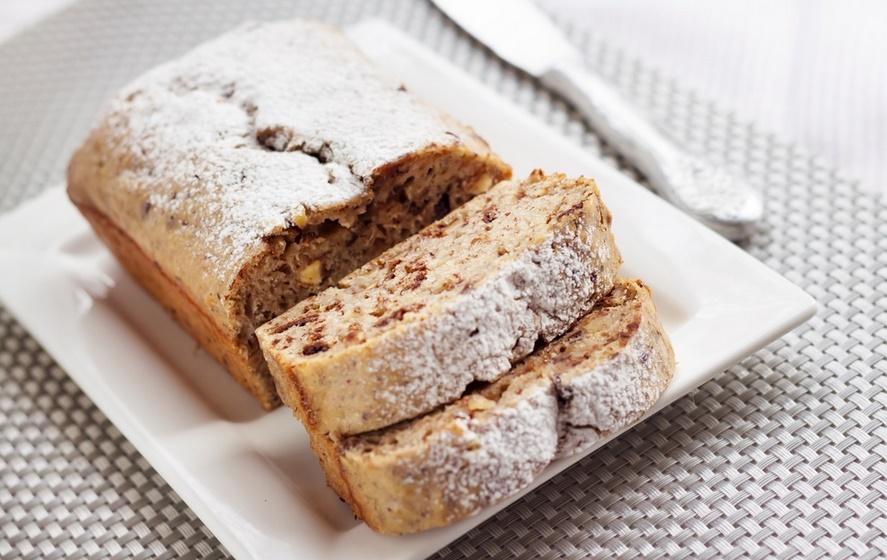 - Ρίχνετε το μείγμα σε ταψί ή 2 φόρμες μακρόστενες τις οποίες έχετε βουτυρώσει και αλευρώσει. Ψήνετε στους 180˚ C σε προθερμασμένο φούρνο για 40’ περίπου. Αφήνετε το κέικ να κρυώσει και πασπαλίζετε με άχνη.
